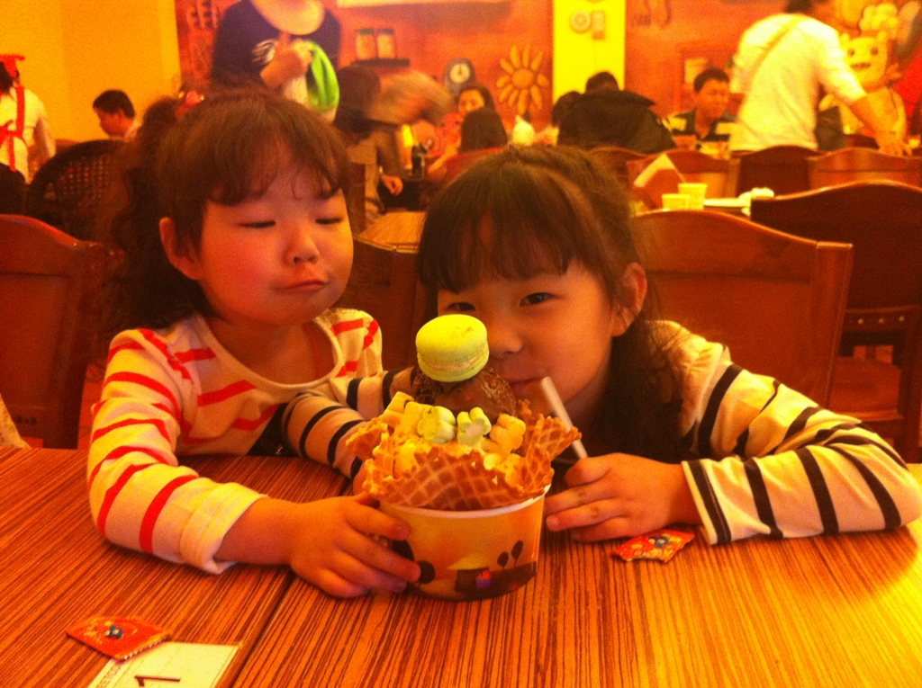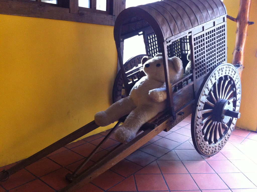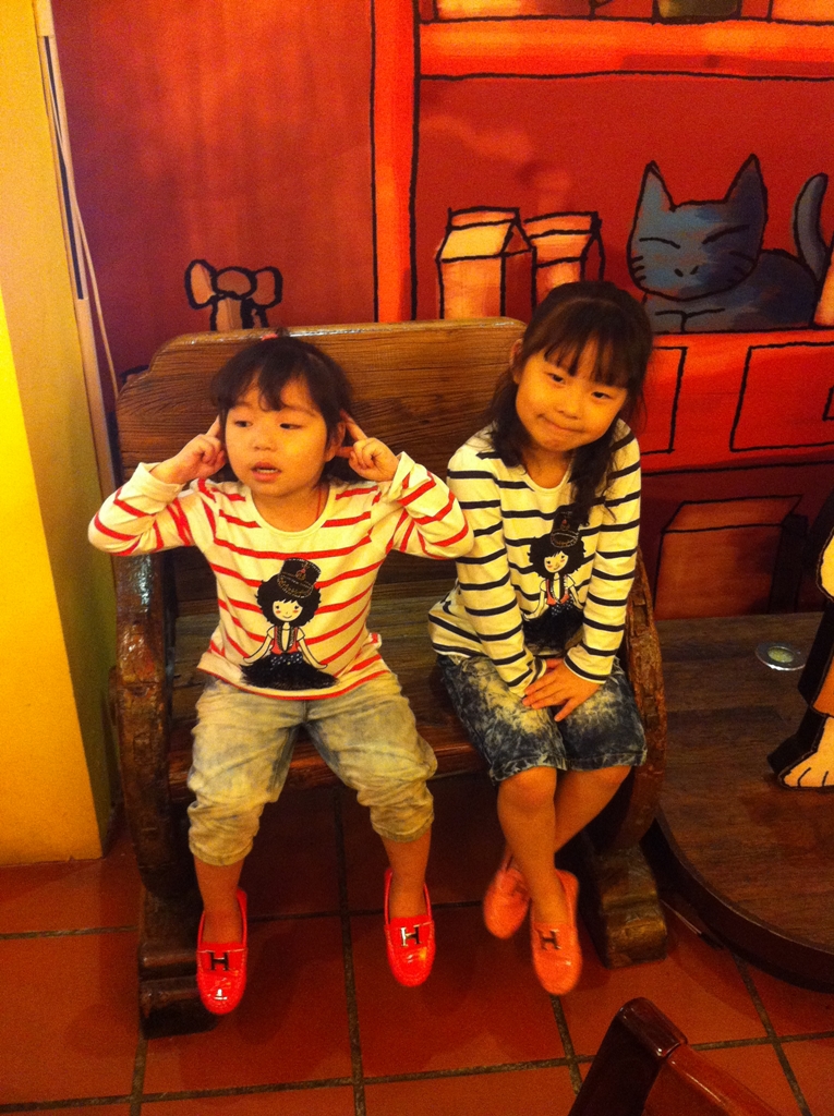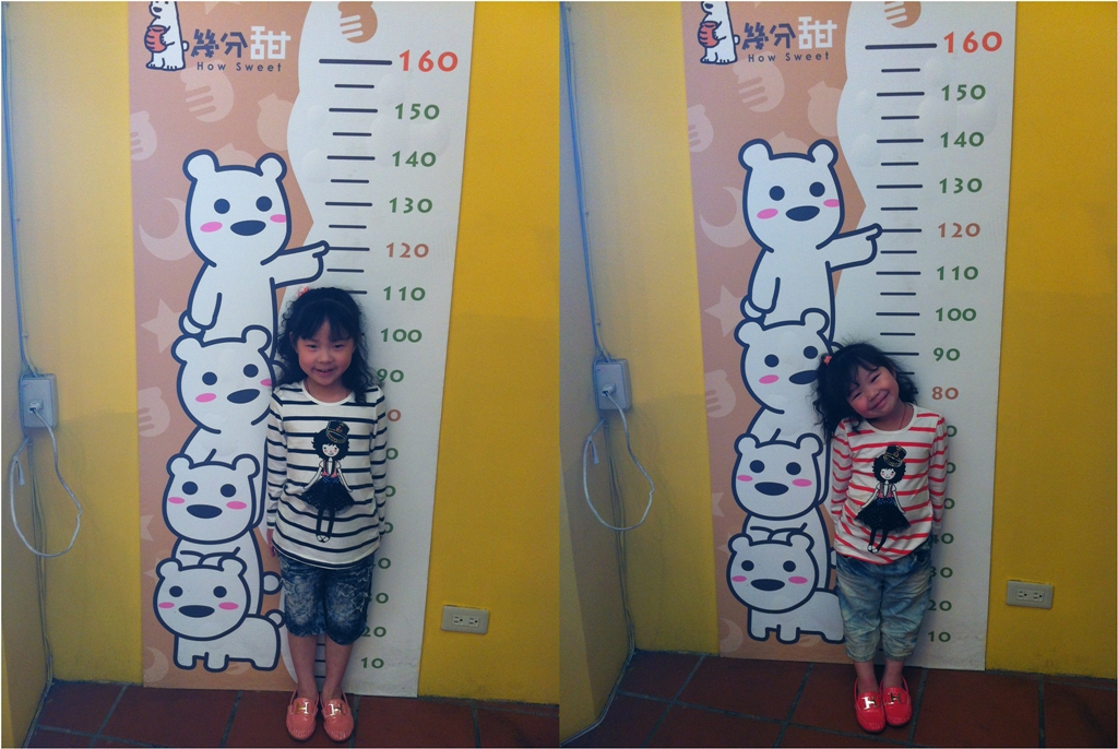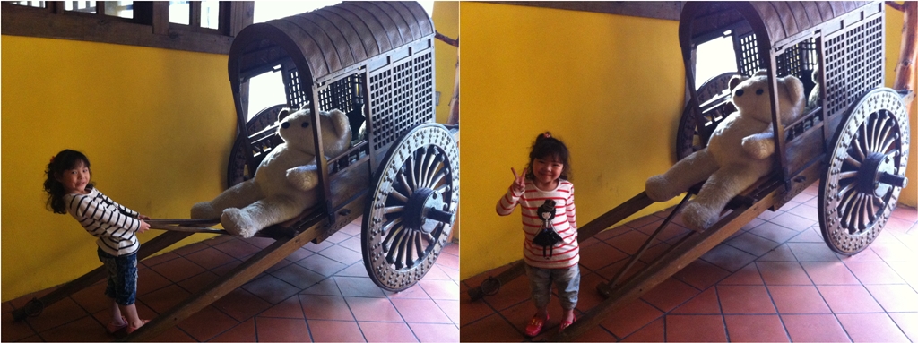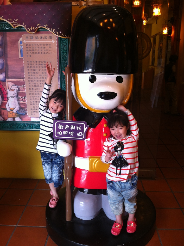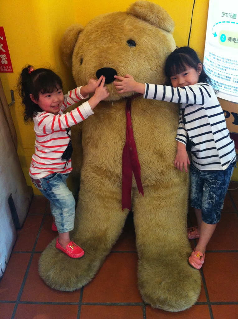 一進門,有大泰迪熊,兩隻小孩,興奮的跟他拍照